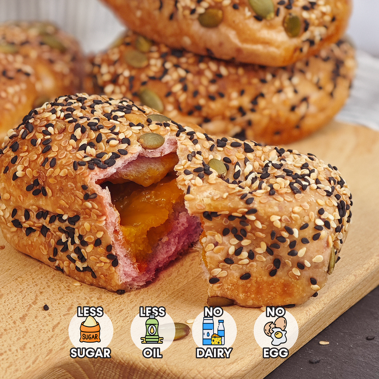 A soft and fluffy purple bun filled with our delicious pumpkin puree, complemented with tangy cranberries for a delightful treat. Perfect for all pumpkin lovers—try it today!