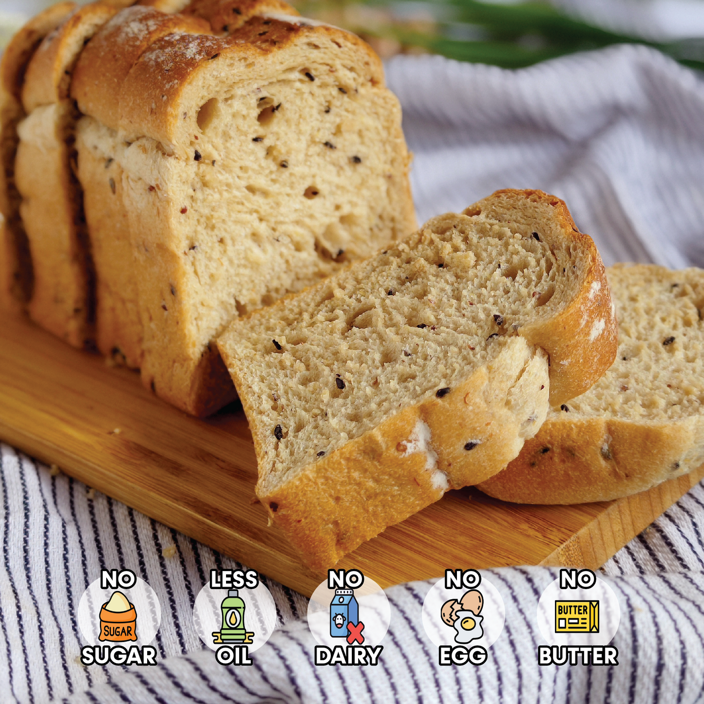 Made with organic quinoa, this fiber-packed sourdough toast is perfect for a hearty and nutritious meal. Pair it with our Vegan Pumpkin Kaya Spread for an irresistible taste!
